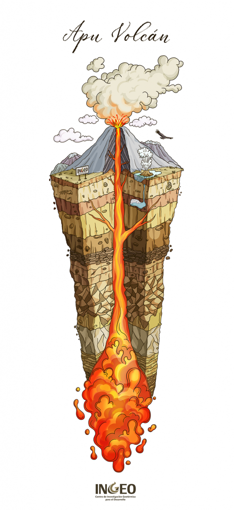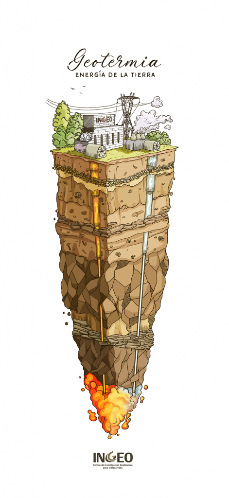 Pero como habrás sospechado, esta es quizá la energía renovable más desconocida de todas. Por eso, el Centro de Investigación Geotérmica para el Desarrollo, INGEO, nos encargó elaborar diseños que busquen acercar los conceptos geotérmicos a toda la ciudadanía.